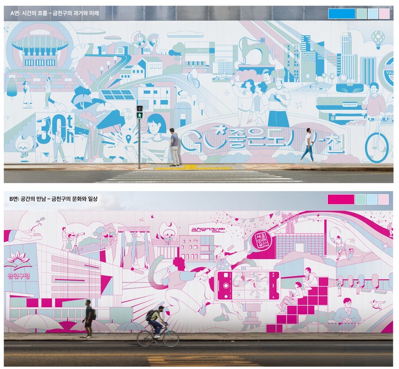 대상은 ‘금천 360°-사람과 공간이 흐르는 좋은 도시’ 작품이 받았다. 금천구의 과거와 현재, 미래를 360° 둘러보는 시선으로 ‘좋은 도시 금천’의 정체성과 흐름을 시각화했다. 특히 A-B 연작 디자인을 금천구의 대표 명소인 금천 9경을 중점적으로 표현해 보는 재미를 더했다.
