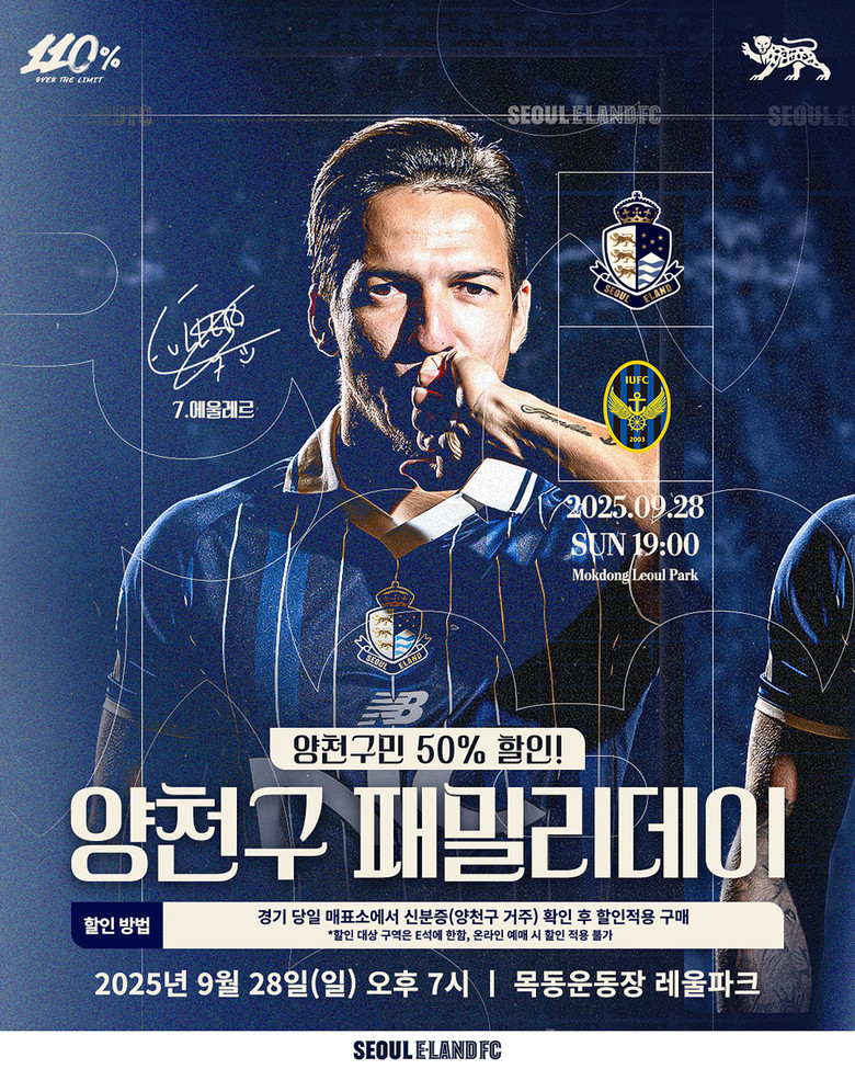 이날 인천유나이티드전은 양천구민에게 특별히 티켓 50% 할인 혜택이 제공되며, 현장 매표소에서 거주 확인 후 반값으로 즐길 수 있다.