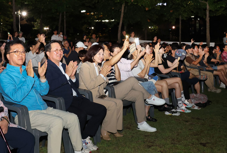 [대전 세계타임즈=이채봉 기자] 대전시는 9월 13일 저녁 유성구 작은내수변공원에서 시민 1,500여 명이 참석한 가운데 ‘제3회 뮤직토크쇼’를 성황리에 개최했다. 이번 공연은 가을밤 정취 속에서 클래식과 인디록이 어우러진 무대를 선보이며 시민들에게 특별한 문화예술 경험을 선사했다.