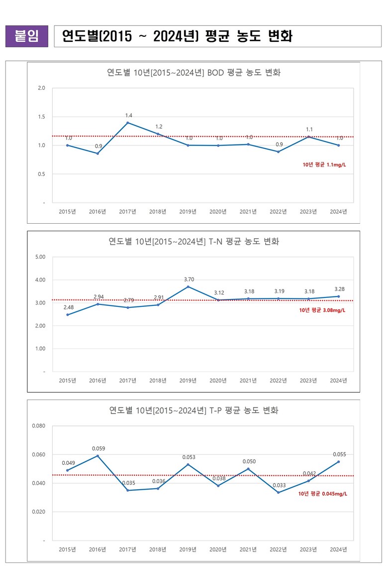 한편, 이번 조사 결과는 각 시·군으로 통보해 하천관리에 활용하도록 하였으며, 충청북도보건환경연구원 누리집에서도 확인할 수 있다.