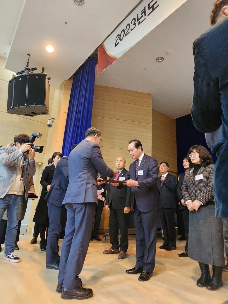 [세계타임즈]최성룡기자 = 마산범죄피해자지원센터 김종식 사무처장은 2024년 1월 12일 오전 11시 경남도청 대회의실(4층)에서 자유민주평화통일 기반조성 유공을 인정받아, 민주평화통일자문회의 의장(대통령) 표창을 전수받았다.