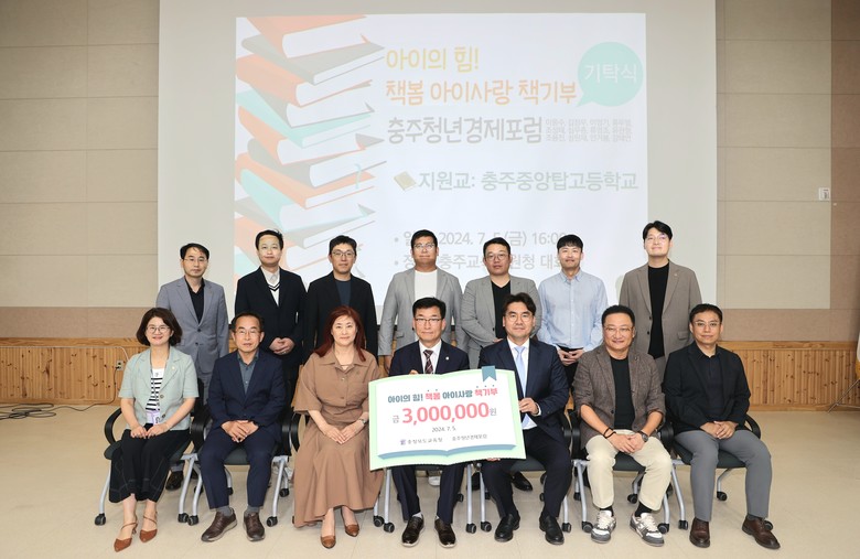 [충북 세계타임즈=이현진 기자] 중앙탑고등학교(교장 정덕화)는 5일(금), 독서 교육활동 지원을 위해 충주교육지원청에서 충주청년경제포럼(회장 이응수)으로부터 도서구입비 3백만원을 전달받고 기탁식을 가졌다.