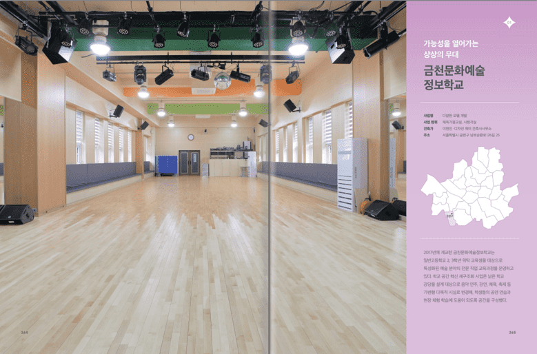 ◦ 꿈을 담은 교실: 학교구성원과 함께 노후교실을 미래교육과 사회적 변화 요구를 반영하여 창의적‧감성적 공간으로 변화하는 종합 디자인 사업 [서울 세계타임즈=이장성 기자] 서울특별시교육청(교육감 조희연)은 2022년 학교공간 재구조화 꿈을 담은 교실 백서 『학교, 고운 꿈을 담다』를 발간했다고 밝혔다.