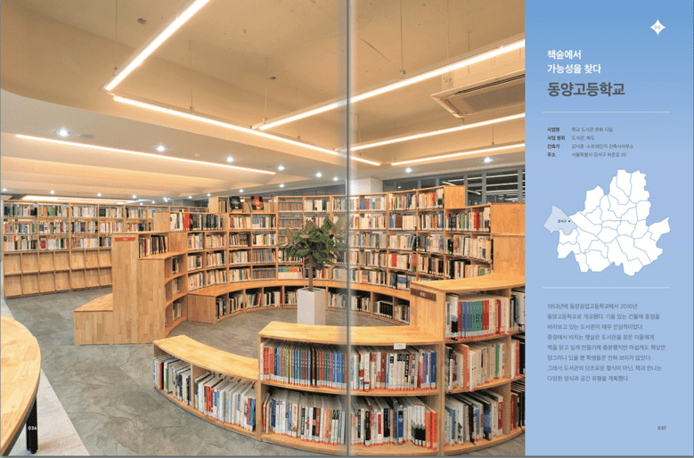 백서에 담긴 학교공간 재구조화 사업은 학교 도서관 문화시설, 초등 ‧ 중등 꿈을 담은 교실, 특수학급 공간혁신, 협력종합예술활동 공간, 학점제형 교육공간, 다양한 모델개발 등 7개 분야로 서울시교육청이 선도적으로 추진하였다.