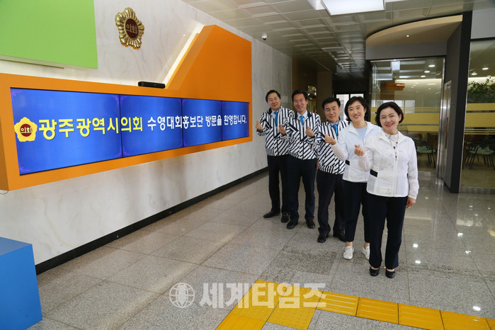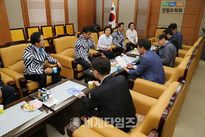| ▲광주광역시의회 장재성 부의장 외 4명은 5월 2일 오전 강원도의회를 방문하여 2019광주세계수영선수권대회 입장권 구매 등 홍보활동을 했다. |