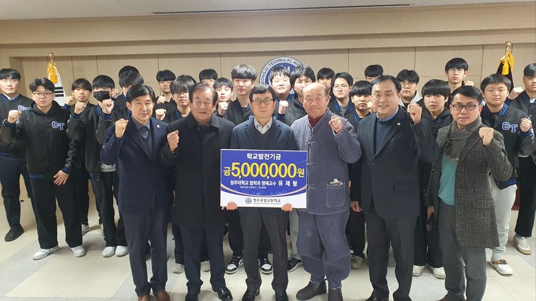 [충북 세계타임즈=이현진 기자] 청주공업고등학교(교장 김경희)는 5일(금), 1968년에 졸업(17회 졸업)한 유재형 교수가 모교의 교장실을 찾아 후배들을 위해 장학금 500만원을 전달했다고 밝혔다.
