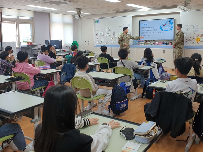 수업에 참여한 학생들은 “군복을 입은 미군 선생님이 처음에는 어색했지만, 차근차근 알려주시니 훨씬 잘 알아들을 수 있었다.”, “미군 선생님께 배우니 발음을 더 정확하게 할 수 있을 것 같다. 영어로 대답하기 쑥스러웠는데 조금씩 자신감이 생기는 것 같다.”라고 소감을 밝혔다.