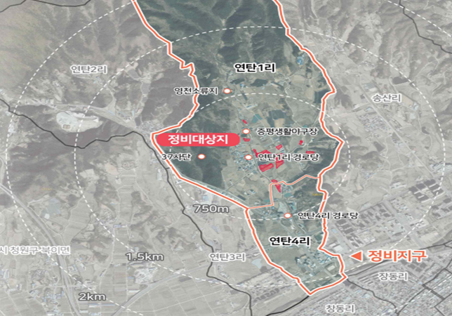 선정된 연탄리는 지난 5년간 축사 밀집 구역으로 분뇨 관련 민원이 119건, 행정처분이 17건 발생한 지역으로 인근에 군부대 37사단과 증평읍 소재지가 인접해 있어 악취 피해로 정비가 시급한 지역이다.