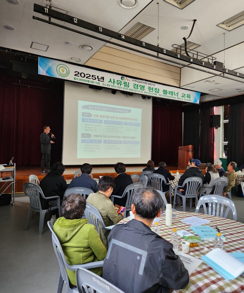 1일차 교육은 청주시 청소년수련원에서 이뤄지며, 산림소득 지원사업, 산채류 종자관리 방법, 기반조성과 임산물 재배, 장비 사용 안전교육 등 임업경영에 필수적인 전문 기술 교육이 진행된다.