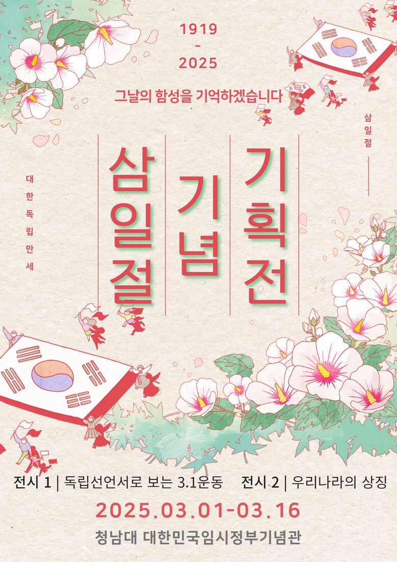 충청북도 청남대관리사업소(소장 김병태)는 28일 올해 제106주년 삼일절을 맞아 청남대 대한민국임시정부기념관 1층에서 오는 3월 1일부터 3월 16일까지 3‧1절 기념 기획전을 진행한다고 밝혔다.