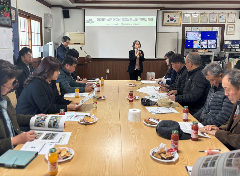 [충북 세계타임즈=이현진 기자] 충북농업기술원(원장 조은희)은 28일 영동읍 주곡리 마을 경로당에서 ‘농촌 어르신 복지 실천’ 시범 사업 현장 설명회를 시군별 마을 대표와 담당 공무원 30여 명이 참석한 가운데 개최했다고 밝혔다.