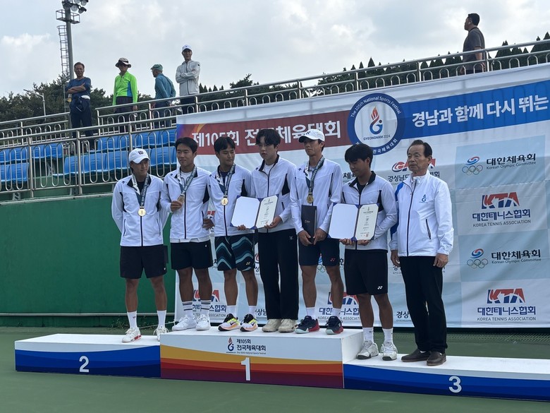 [세종 세계타임즈=이채봉 기자] 세종특별자치시 직장운동경기부 소속 테니스팀이 지난 11일부터 17일까지 경남 일원에서 개최된 제105회 전국체육대회 테니스 경기 남자단체전에서 우승을 차지했다.