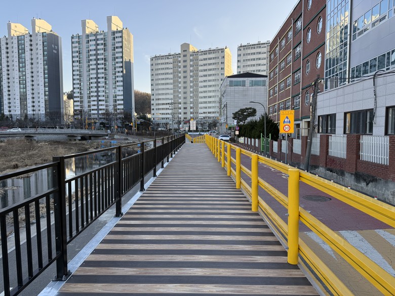 동부동 일원 보행환경 개선공사는 처인구 마평동 양지천변 일원 연장 830m, 폭 2m 규모의 보도 재포장 사업으로, 노후 보도블록 파손과 단차로 인한 보행 불편을 해소했다.