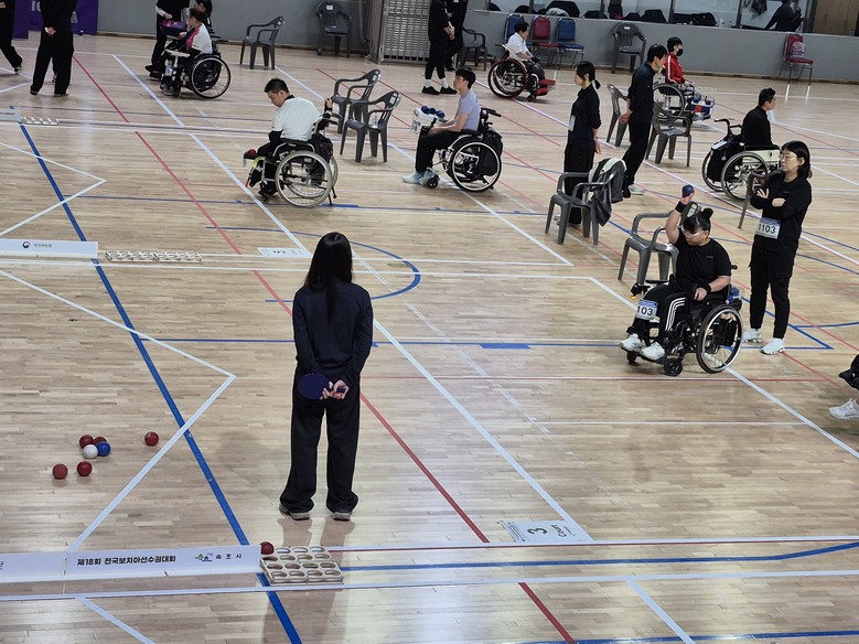 보치아는 패럴림픽 정식 종목으로, 선수들이 각자 배정된 공을 번갈아 던져 흰 공에 얼마나 가깝게 붙이느냐로 점수를 겨루는 경기다.