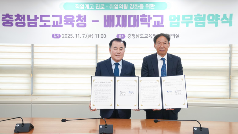 김지철 교육감은 “이번 협약은 배재대학교와 충남교육청이 협력하여 직업계고 학생들의 진로 설계와 취업역량 향상을 실질적으로 지원하는 중요한 계기”라며, “앞으로도 관계기관과 긴밀히 연계해 학생들이 양질의 일자리에 취업하고 지속적으로 성장할 수 있는 기반을 마련하겠다”라고 밝혔다.