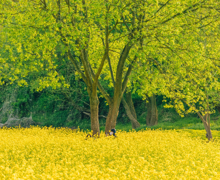 옥천의 친수 테마공원은 봄이면 화려한 유채꽃이 만발하는 곳으로 유채꽃밭 사이를 걷다 보면 마치 노란 물결 속을 걷는 듯한 기분을 느낄 수 있다.