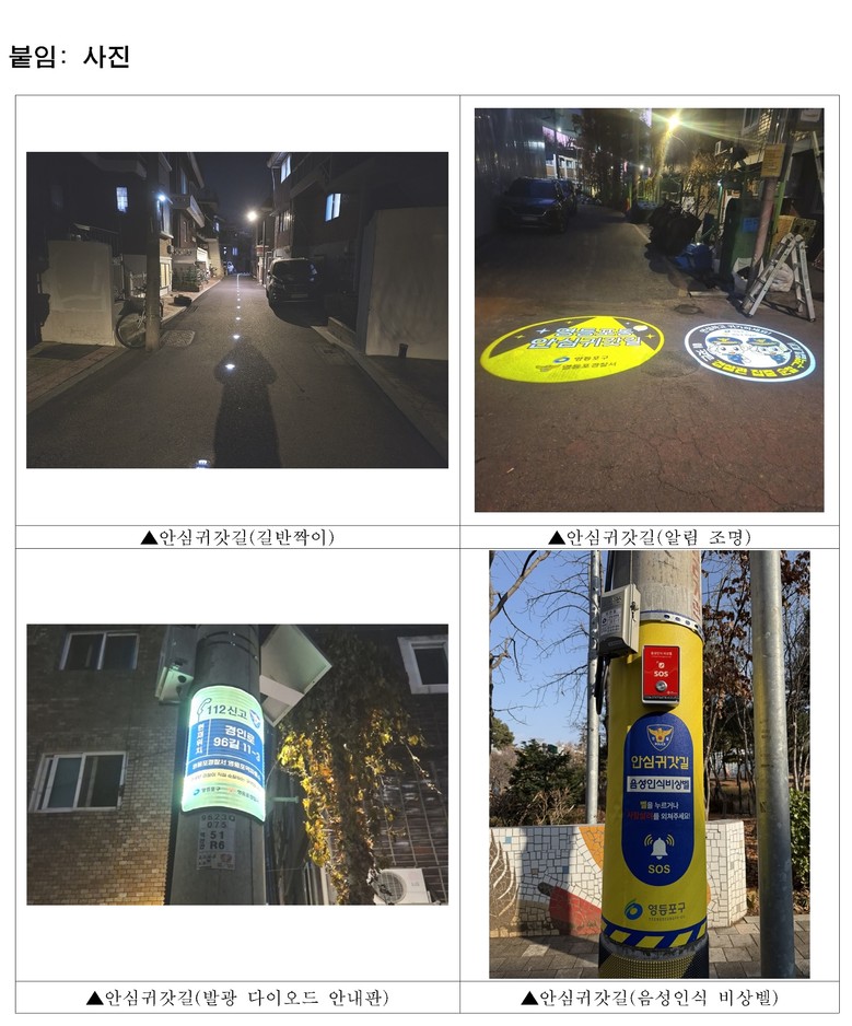 최호권 영등포구청장은 “안심귀갓길은 단순한 보행로 정비를 넘어, 구민의 일상과 생명을 지키는 생활안전 인프라”라며 “지역 여건에 맞는 안전시설을 지속적으로 확충하고, 구민이 체감할 수 있는 쾌적하고 살기 좋은 도시 환경을 만들어 나가겠다”라고 전했다.