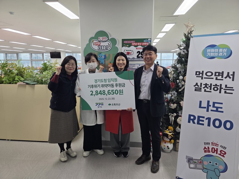 서기천 경기도 총무과장은 “잔반을 줄이는 일상 속 실천이 탄소 감축을 넘어 기후 취약계층 지원으로 이어졌다는 점에서 의미가 크다”면서 “앞으로도 환경 보호와 나눔을 함께 실천하는 조직 문화를 확산해 나가겠다”고 말했다.