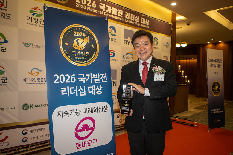 [동대문구 세계타임즈=이장성 기자] 동대문구(구청장 이필형)가 조선비즈에서 주최하고 기획재정부, 과학기술정보통신부 등이 후원하는 「2026 국가발전 리더십 대상」에서 지속가능 미래혁신 부문 대상을 수상했다고 29일 밝혔다.