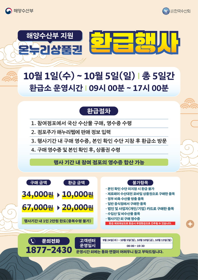 - 구매금액의 30% 환급…농축산물+수산물 최대 4만 원 혜택