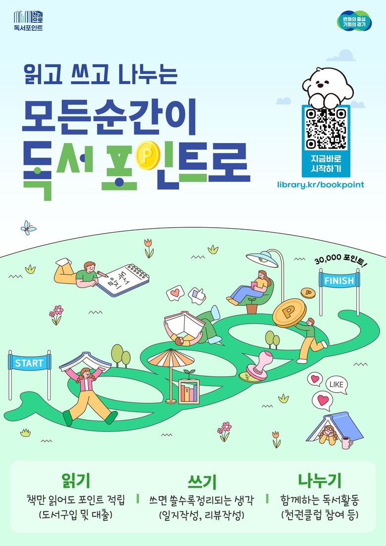 경기도와 경기도평생교육진흥원은 평생 독서 프로젝트 ‘천권으로’ 중 하나로 전국 지자체 최초 ‘독서 포인트 제도’를 도입해 ▲도서 구매 ▲도서 대출 ▲독서 일지 작성 ▲리뷰 공유 등 독서 활동에 포인트를 지급하고 있다. 적립된 포인트는 매월 25일 지역화폐로 전환되며, 지역 서점에서 도서 구매 시 사용할 수 있다. 올해 하반기 적립 가능 포인트는 인당 최대 3만 원이다.
