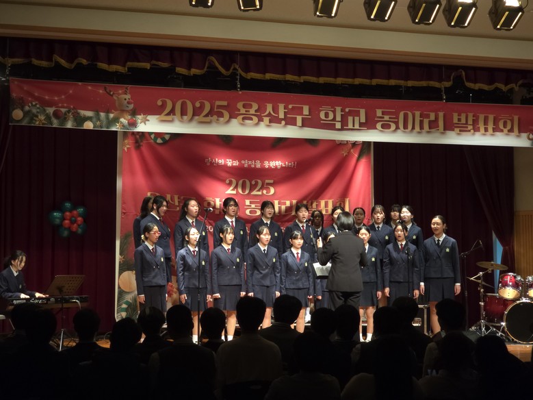 | ▲ ‘2025년 용산구 학교 동아리 발표회’에서 보성여자중학교 합창부가 관중들에게 아름다운 합창을 선보이고 있다. |