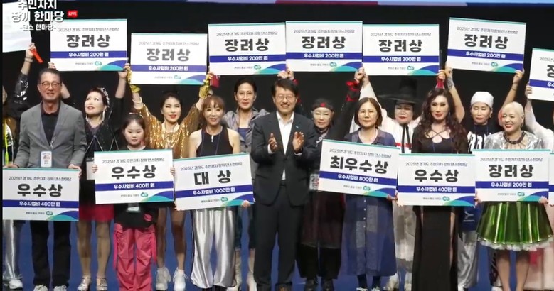 - 대상 1팀·최우수상 1팀·우수상 3팀·장려상 23팀 선정… 총 7,600만 원 지원 [경기도 세계타임즈=송민수 기자] 경기도는 24일 의정부문화재단 대극장에서 ‘2025년 경기도 주민자치 장끼 댄스 한마당’을 열고, 성남시 ‘댄싱덕(춤추는 오리)’ 팀에 대상을 수여했다.