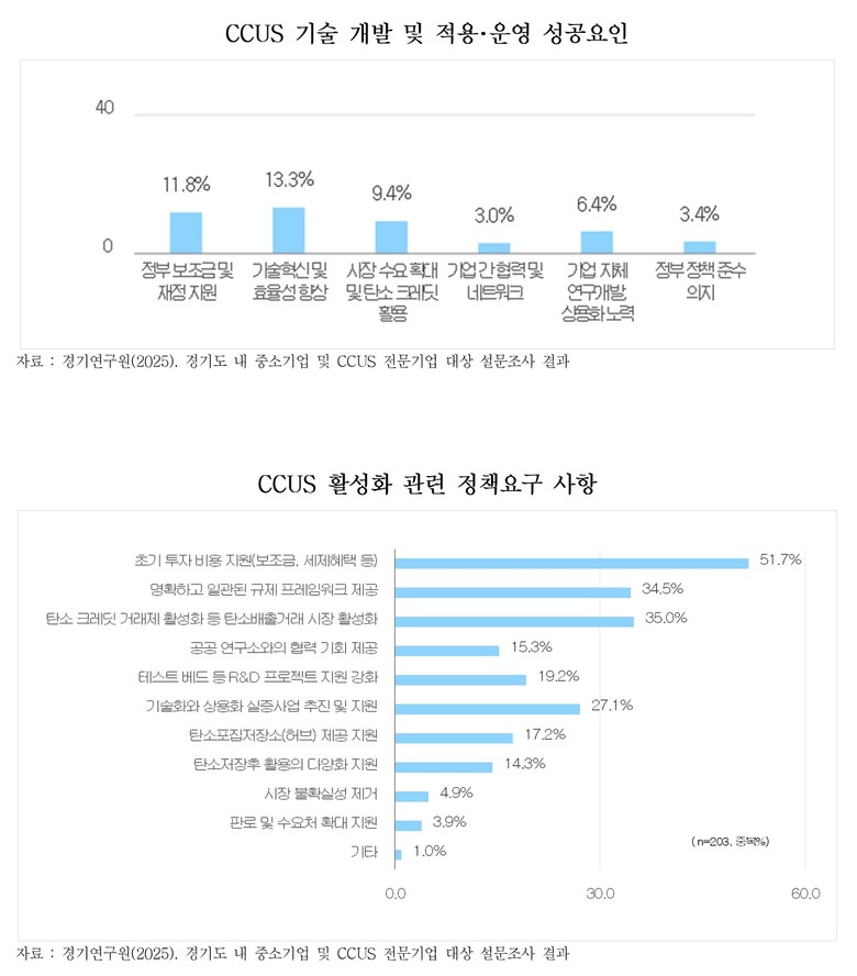 보고서는 CCUS는 단순한 환경 기술이 아니라, 산업 경쟁력 확보와 수출 규제 대응을 위한 핵심 경제 전략이고, 경기도가 선제적으로 시장 기반을 조성할 경우, 국내 CCUS 산업의 중심지가 될 것이라고 전망했다.
