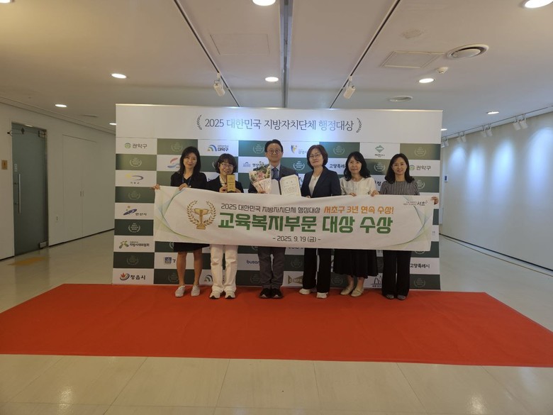[서초구 세계타임즈=이장성 기자] 서울 서초구(구청장 전성수)가 지난 19일 이데일리(주)가 주최하고 행정안전부, 대한민국시장군수구청장협의회 등 유관기관이 후원한 '2025 대한민국 지방자치단체 행정대상'에서 교육·복지 분야 대상을 수상했다고 밝혔다.