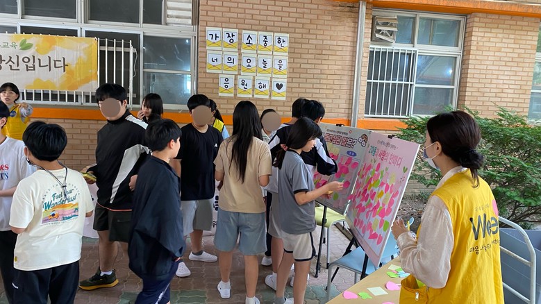 주요 활동으로는 친구나 가족에게 사랑의 표현을 작성하는 ‘너의 마음을 전해줘’, 즐거운 놀이 활동을 통해 생명과 사랑의 가치를 인식하는 ‘하트시그널’, Wee센터 홍보 물품 배부 등이다.