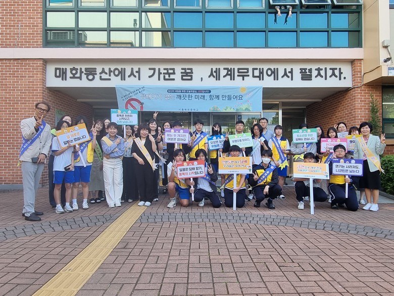 한편, 이날 행사 현장에는 시흥매화중 5월 흡연 예방 슬로건 공모전에서 최우수작으로 선정된 2학년 최민재 학생의 작품 ‘담배 연기 없는 깨끗한 미래, 함께 만들어요’가 현수막으로 제작, 게시되어 눈길을 끌었다.