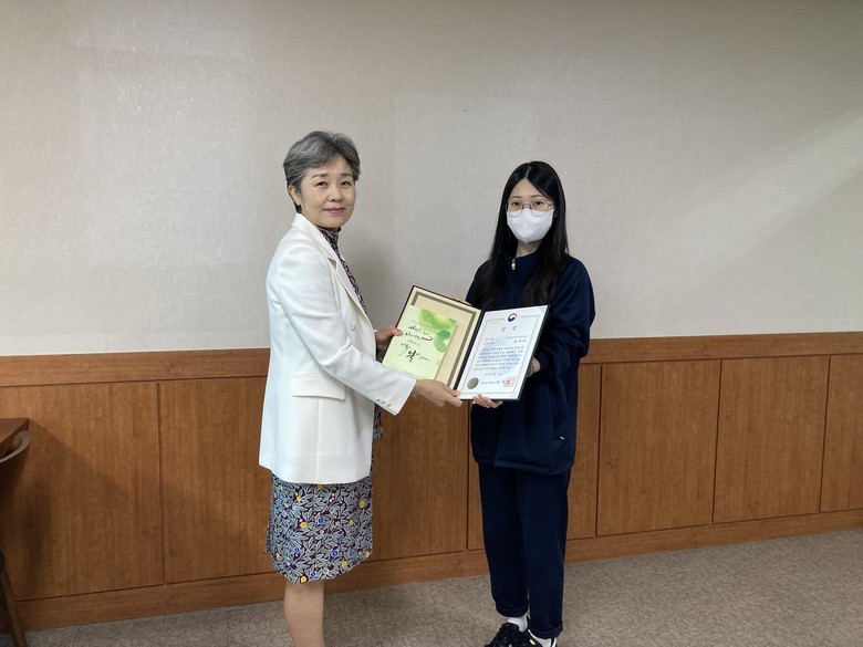 | ▲ 금호중앙여고 윤태연 학생이 지난 3월 1일 동국대학교에서 열린 ‘제45회 전국만해백일장’에서 산문 부문 장원(교육부장관상)‘을 수상했다. 해당 장원 사장 사진. |