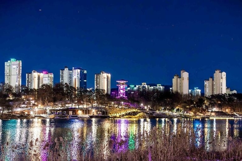 ▲ 수원시 영통구에서 자연과 도시를 모두 즐길 수 있는 광교호수공원의 야경.