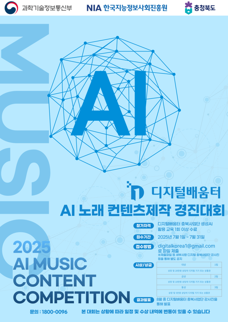 참가 자격은 충북 디지털배움터의 생성형AI 교육과정을 수료한 도민 개인 또는 팀이다. 신청은 디지털배움터 강사 및 서포터즈를 통해 참가 신청을 할 수 있으며, 결과는 8월 27일 발표할 예정이다.