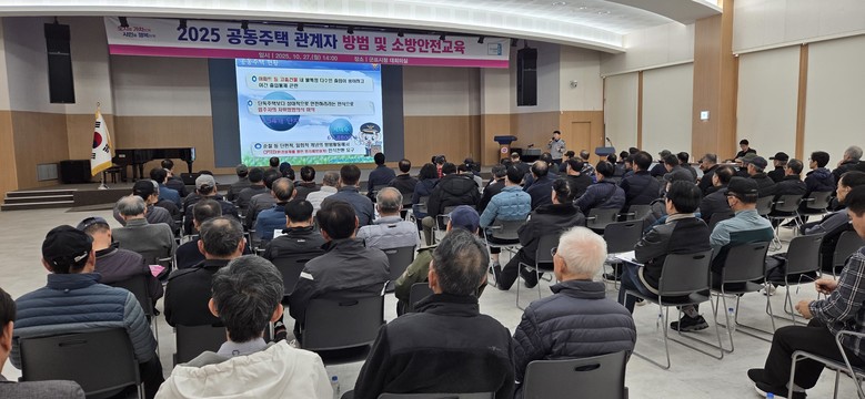 [군포시 세계타임즈=송민수 기자] 군포시는 10월 27일(월) 군포시청 대회의실에서 공동주택 경비업무 종사자 및 시설물 안전관리자 등 200여명을 대상으로 2025년 공동주택 방범 및 소방안전교육을 실시했다.