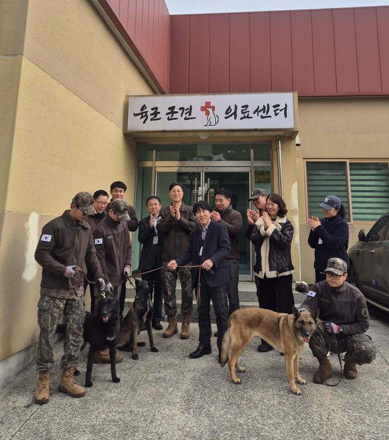 | ▲ 경기도가 지난 5일 육군 군견훈련소를 방문하여 은퇴군견 3마리를 인수하였다 |