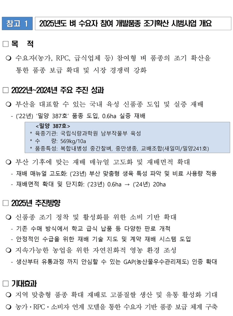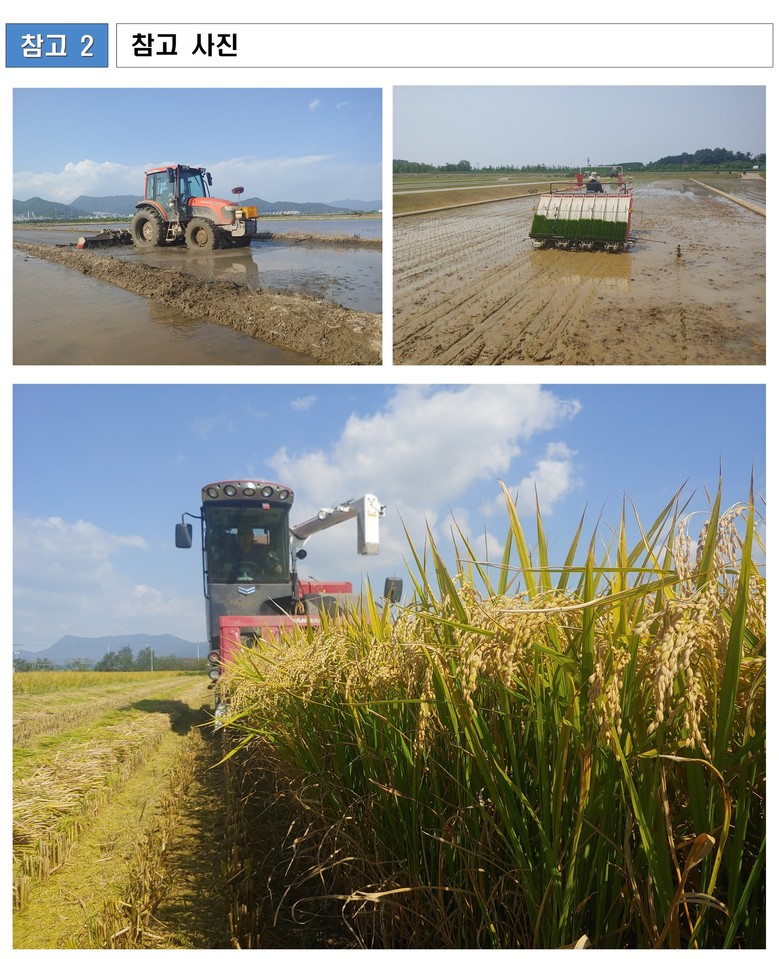 * 전량 계약 재배 방식: 수확된 벼의 전량 출하 약정 후 재배하는 방식으로, 농가의 소득 안정화에 기여
