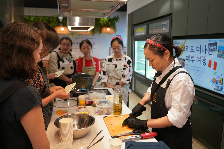 요리교실은 8월 6일부터 9월 24일까지 매주 수요일 오전 11시부터 2시간 동안 총 8차례 운영한다. 8월에는 남미 출신 김나영 셰프가 강의를 맡아 ▲참치 카우사(8월 6일) ▲로모 살타도(8월 13일) ▲세비체(8월 20일) ▲해산물 볶음밥(8월 27일) 등 페루의 대표 요리를 선보였다. 참가자들은 직접 음식을 만들며 현지의 맛과 문화를 생생히 체험했다.