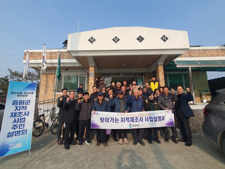 이번 행사는 충북도와 증평군이 공동 주관하며, 토지소유자 및 이해관계자, 한국국토정보공사 관계자 등 50여명이 참석하여 지적재조사 사업의 목적, 추진 배경, 절차, 동의서 제출 방법 등 전반적인 사항을 설명하여 주민들의 사업에 대한 이해도를 높이고 공감대를 형성하는 기회를 마련하였다.
