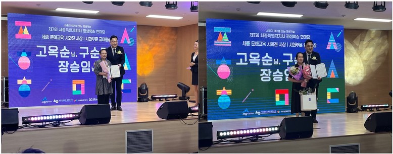 수상자인 구순덕 어르신과 장승임 어르신은 “평생 글을 모르고 살았는데, 평생교육학습관에서 한글을 배우면서 내 마음속 이야기를 글로 쓸수 있게 되어 꿈만 같다.”라며 “이 나이에 상까지 받게 되어 너무 기쁘고 앞으로도 더 열심히 배워서 더 많은 이야기를 쓰고 싶다.”라고 소감을 밝혔다.