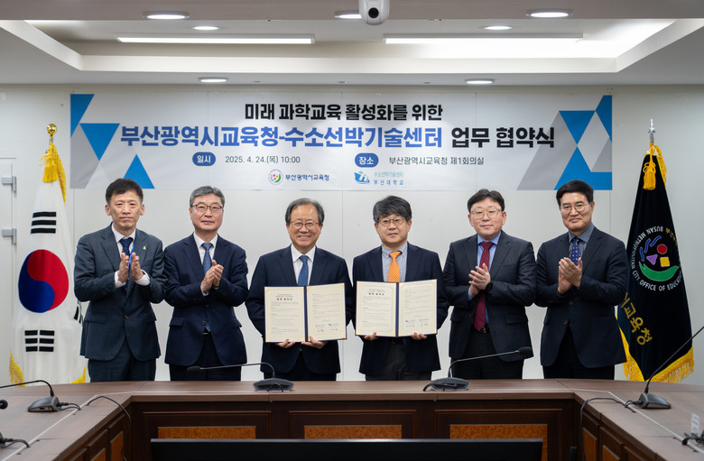 [부산 세계타임즈=이용우 기자] 부산광역시교육청(교육감 김석준)은 24일 오전 10시, 시교육청 회의실에서 부산대 수소선박기술센터와 미래 과학교육 활성화를 위한 업무 협약을 체결했다.