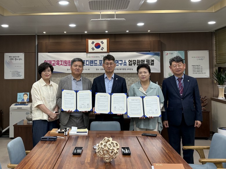 [강원도 세계타임즈=김민석 기자] 인제교육지원청(교육장 최수호)은 6월 27일(금) 14시 인제교육지원청 교육장실에서 ㈜포디랜드(대표 양효숙), 포디융합연구소(소장 박호걸)와 ‘융합교육 활성화를 위한 업무협약’을 체결했다.