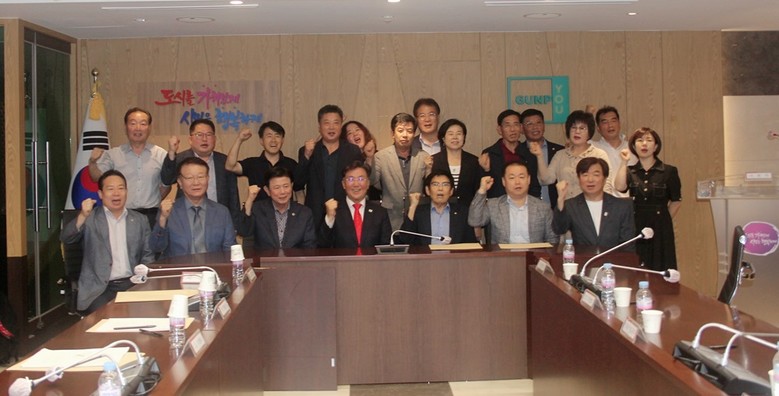 이영호 군포신문 대표의 사회로 진행된 이날 임시총회에는 하은호 시장, 정윤경 도의회부의장, 최진학 국민의힘 위원장, 이영식 노인회장, 주근동 문화원장, 한진운 재개발연합회장, 김공주 학교운영위원장협의회장, 김사녀 주민자치회 회장, 김선옥 통장협의회 회장, 김순희 지역사회보장협의체 회장, 김정옥 리모델링연합회 회장, 김창원 재건축연합회 회장, 박상환 장애인단체총연합회 회장, 서태연 새마을회 회장, 이성민 자율방범대 연합대장이 참석해 지하화 결의를 다졌다. 또 이세균 상인연합회 회장, 이택진 미래도시가치추진단 대표, 정진호 장애인체육회 사무국장, 주성하 위생단체협의회 회장, 채경택 아파트연합회 회장, 한항교 안전보안관 회장도 참석해 “군포시 구간 6개 전철역 지하화를 위해 모든 역량을 총결집하자”고 힘을 보탰다.