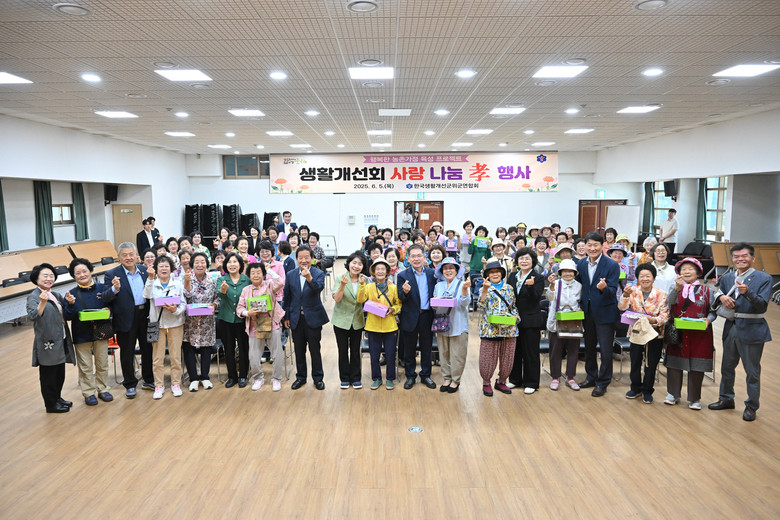 [군위군 세계타임즈=한윤석 기자] 한국생활개선군위군연합회(회장 이준남)는 지난 5일 군위군 관내에서 지역 어르신, 생활개선회원 등 80여 명이 참석한 가운데 행복한 농촌가정 육성을 위한 ‘이웃 어르신과 함께하는 정 나누기 효행사’를 실시했다.
