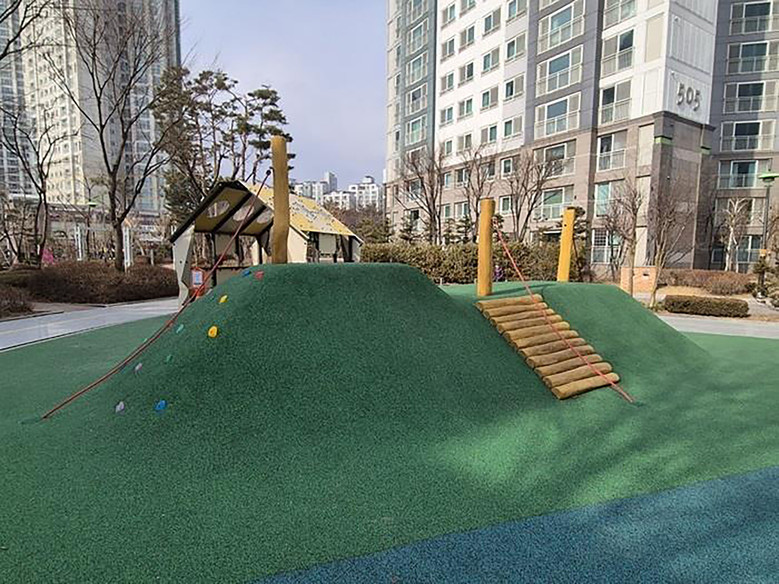 | ▲ 성남시의 보조금 1억원을 지원받아 지난해 12월 아동친화적(지형활용형)으로 리모델링한 판교원마을 5단지 내 놀이터 |