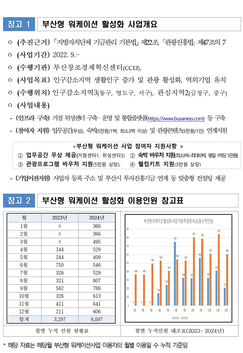 또한, 지난해(2024년) 문화체육관광부 공모사업으로 선정된 ‘워케이션 활성화 사업(Sea LAB in BUSAN)’은 인구 감소 지역 외 해운대구 일대에서 추진 중인 사업으로, 오는 3월까지 사업 기간이 연장된다.