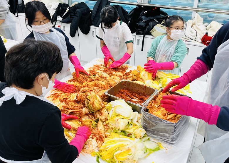 [대전 세계타임즈=이채봉 기자] 대전문화초등학교는 11월 21일, ‘문화가족 김장의 날’ 행사를 진행했다. 올해로 3회째를 맞이하고 있는 이 행사는 교육복지실과 학생회가 함께 준비하여 희망학생과 그 가족들이 참여해 직접 김장을 하고, 만든 김치를 인근 경로당과 지역 복지관에서 추천한 노인가구, 교내 다자녀 가정에 전달하는 행사이다. 특히, 경로당과 노인가구에는 학생들이 직접 마음을 담아 쓴 편지도 함께 전달하여 더욱 따뜻한 행사가 되었다.