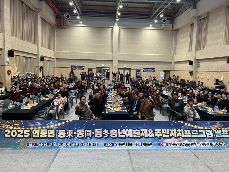 [세종 세계타임즈=이채봉 기자] 세종특별자치 연동면(면장 박종우)이 지난 29일 연동면 행복누림터에서 주민 300여 명이 참여한 가운데 ‘동동동(東同冬) 송년 예술제’를 개최했다.
