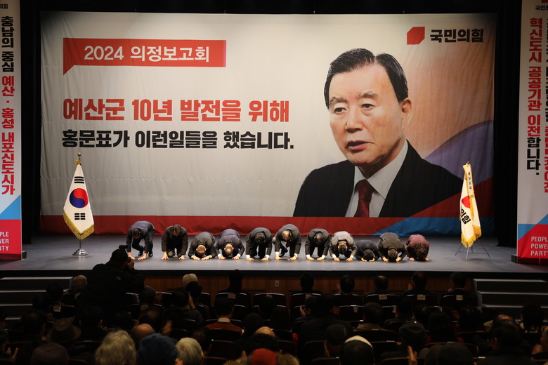 [세계타임즈]최성룡기자 = 국민의힘 홍문표 국회의원(충남 홍성·예산)은 지난 8일 1,500여명 주민들이 대성황을 이룬 홍성군 의정보고회에 이어 10일 예산군 문예회관 대강당에서 1천여명의 예산군 주민들이 참석한 가운데 의정보고회를 가졌다.