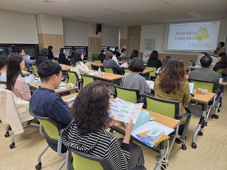 [군포시 세계타임즈=송민수 기자] 군포시는 10월 14일(화) 시청 별관 교육장에서 2025년 주거복지 실무자 교육을 실시했다. 이번 교육은 동 행정복지센터 주거복지 담당자와 유관기관 실무자를 대상으로 진행되었으며 주거복지센터의 역할을 공유하고 주거취약계층에게 실질적인 도움이 되도록 하는 데 중점을 두었다.